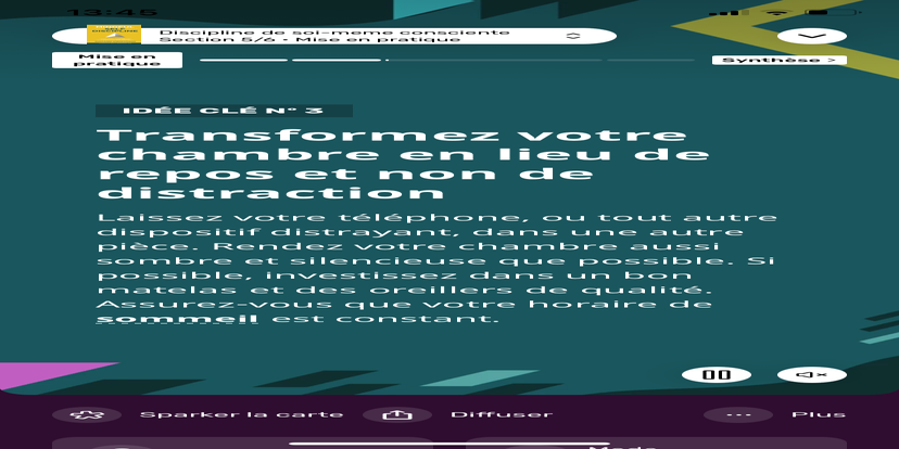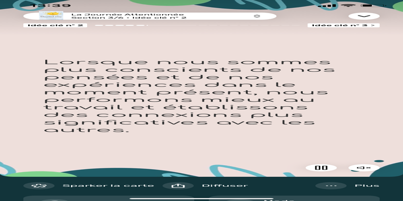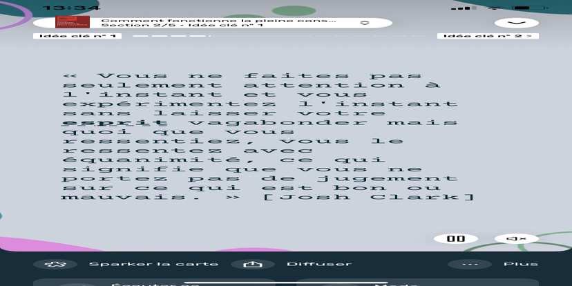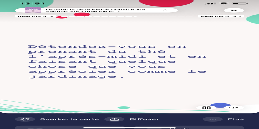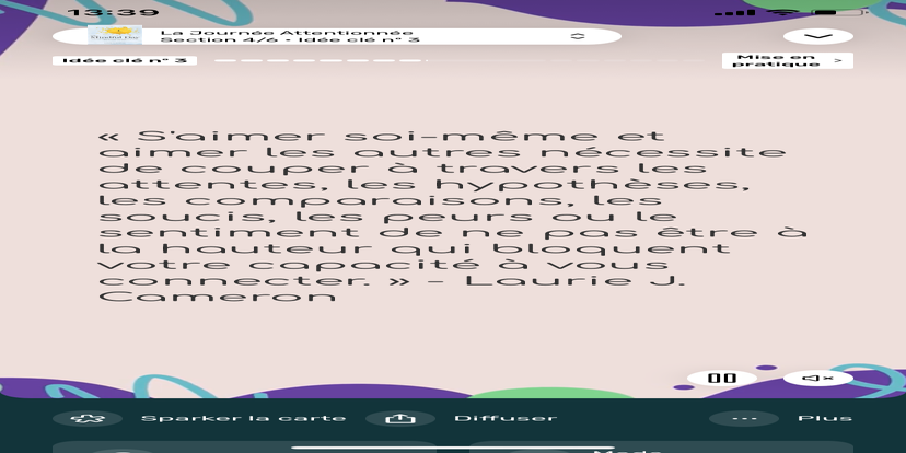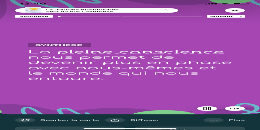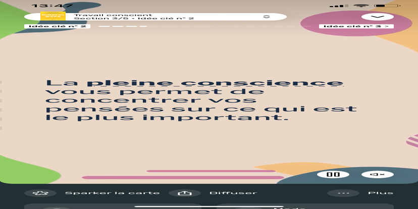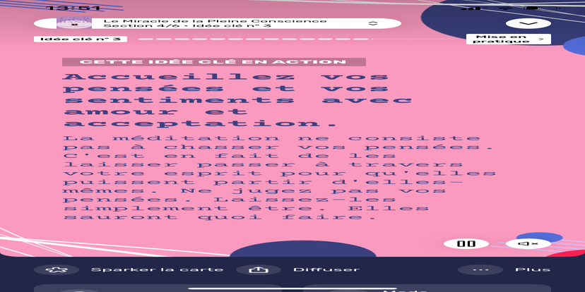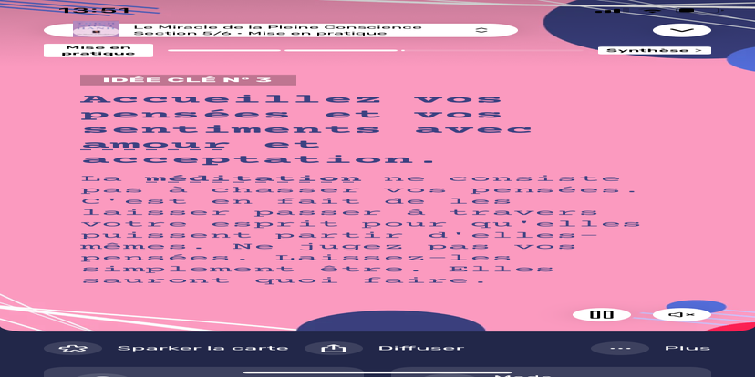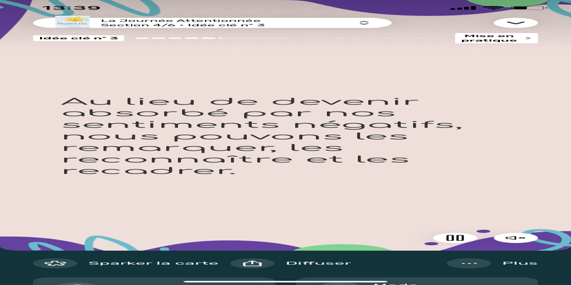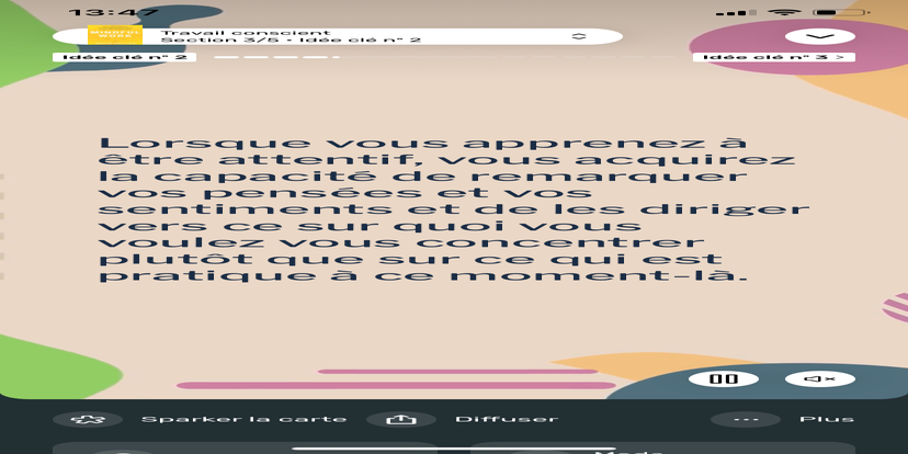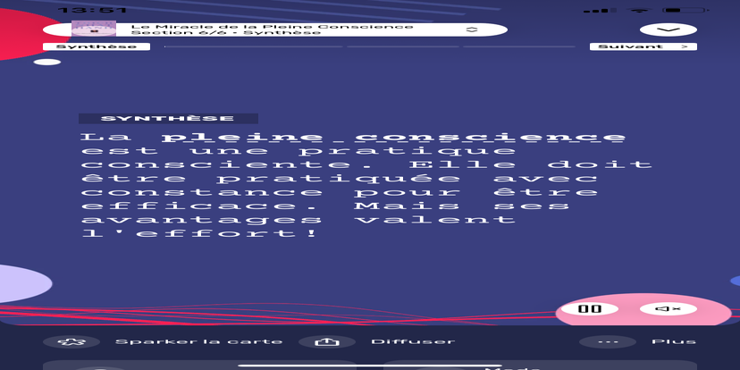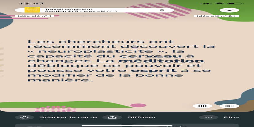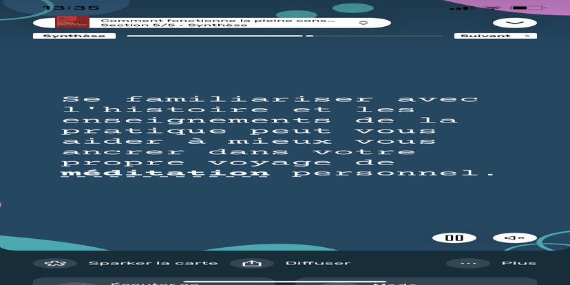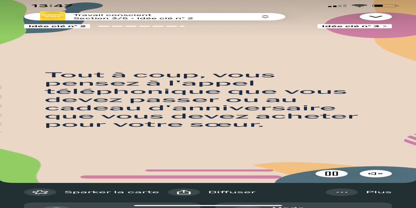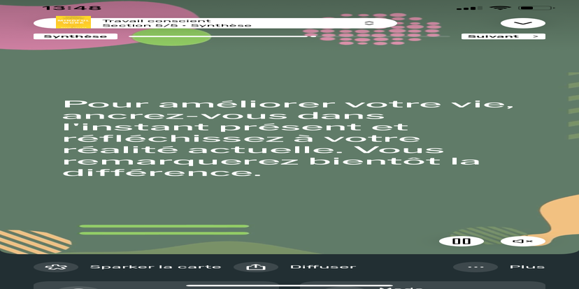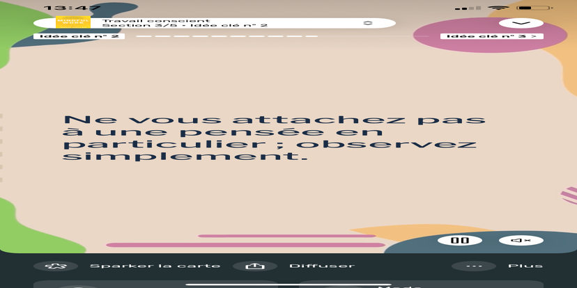 Prends un moment pour te réhabituer à l’environnement qui t’entoure. Souviens-toi que tu peux toujours revenir à cet état de relaxation et d'accès à ton subconscient.