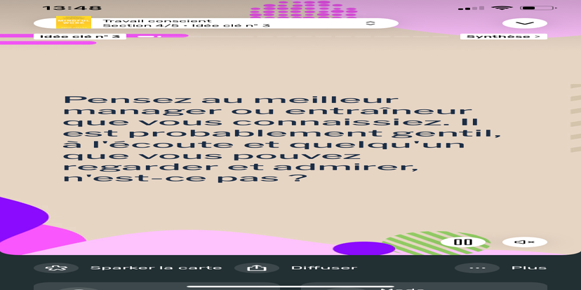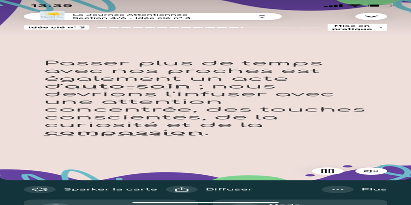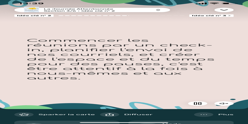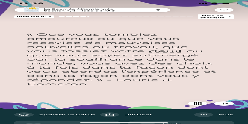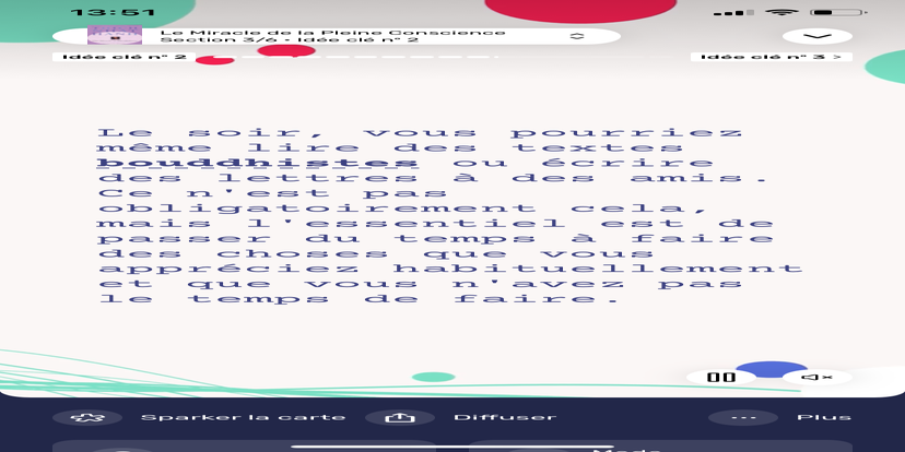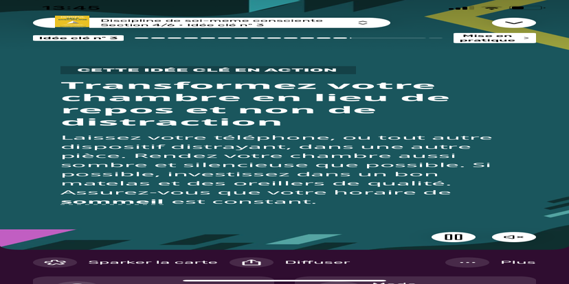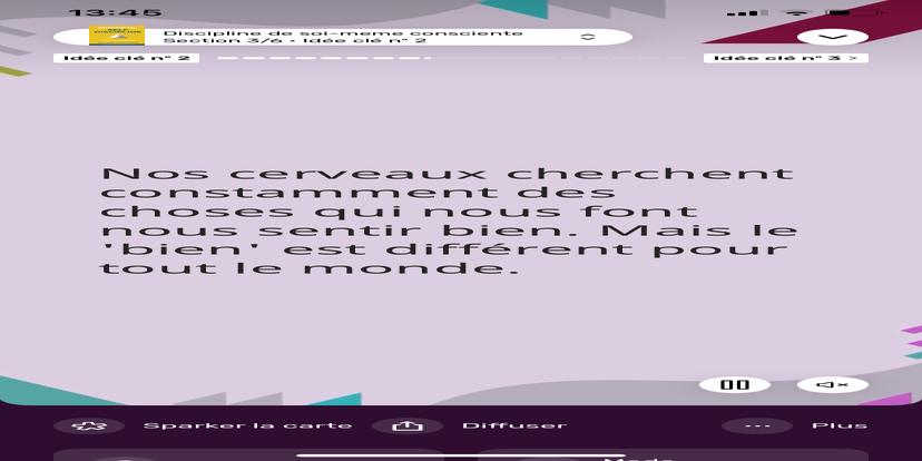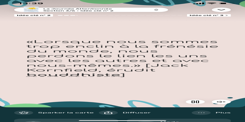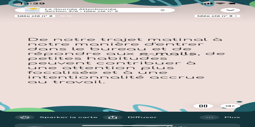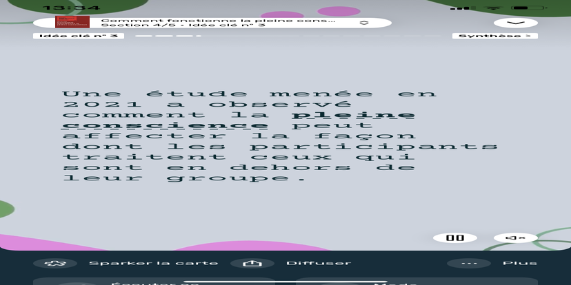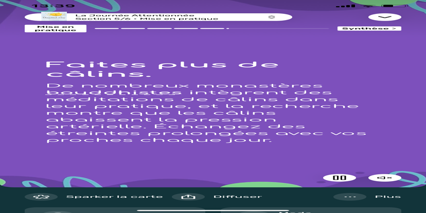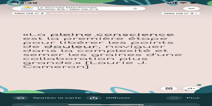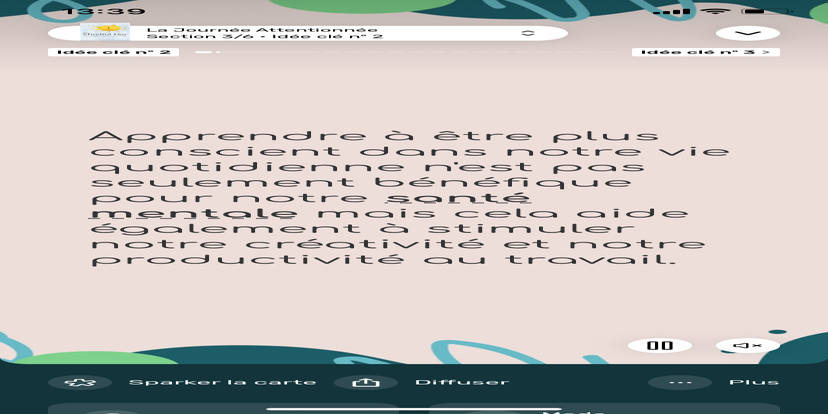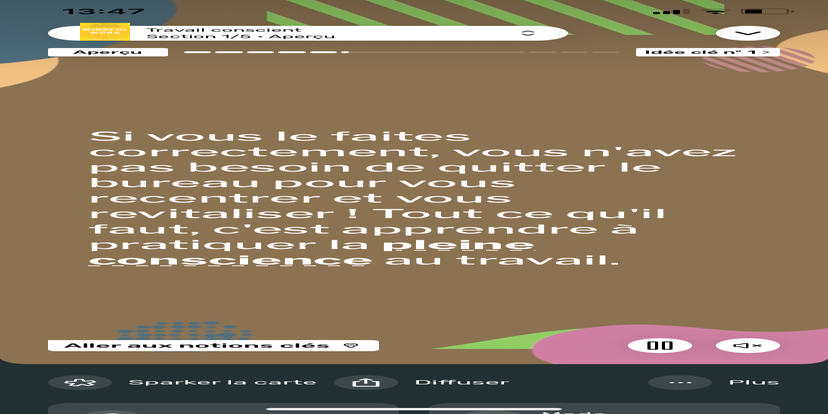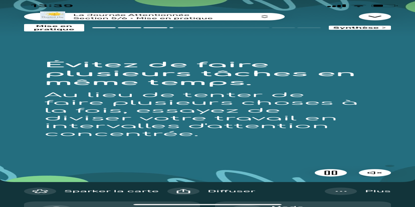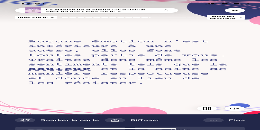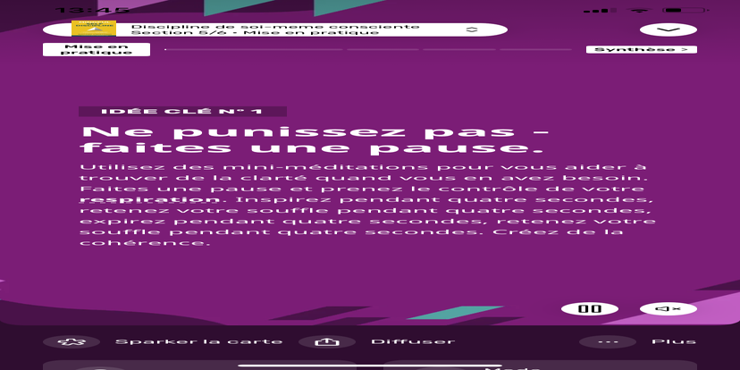Prends un moment pour te réhabituer à l’environnement qui t’entoure. Souviens-toi que tu peux toujours revenir à cet état de relaxation et d'accès à ton subconscient.